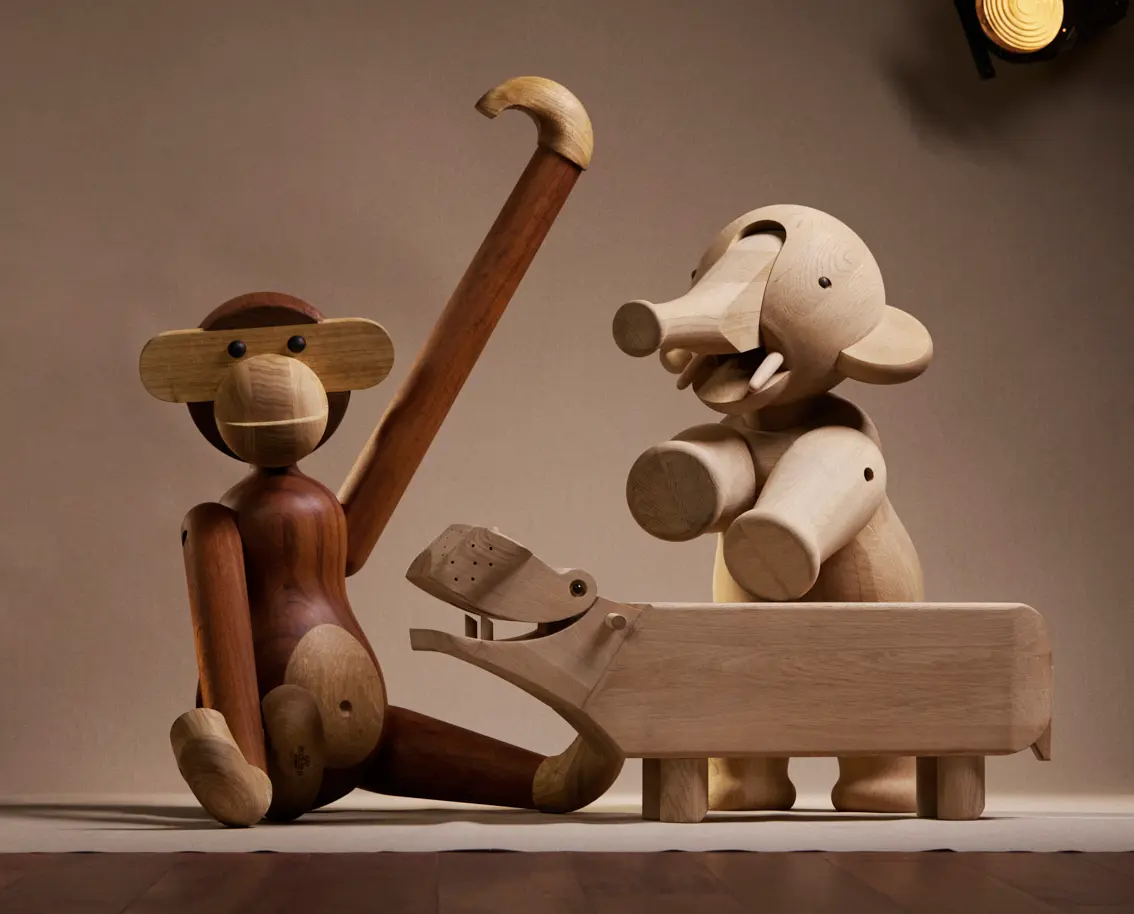 Sølvsmed og designer Kay Bojesen kunne noget helt særligt. Han kunne give træ liv, og han blev verdensberømt for at skabe trædyr med sjæl, humor og glimt i øjet. Kay Bojesens serier spænder bredt fra de ikoniske aber over de farvestrålende fugle og charmerende træfigurer til sengetøj og lejetøj til babyer.